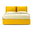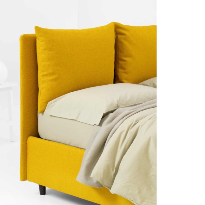 Il cuore pulsante del design di Terra è la sua testata, concepita per essere non solo un elemento decorativo ma un vero e proprio supporto al relax. I due grandi cuscinotti, realizzati in soffice ovatta, invitano alla lettura e al riposo ancora prima di stendersi. Grazie a un intelligente sistema di fissaggio tramite fasce in velcro celate, i cuscini possono essere rimossi con estrema facilità. Questo dettaglio sartoriale rende le operazioni di pulizia periodica e manutenzione del tessuto semplici e veloci, mantenendo il letto sempre igienizzato e come nuovo.