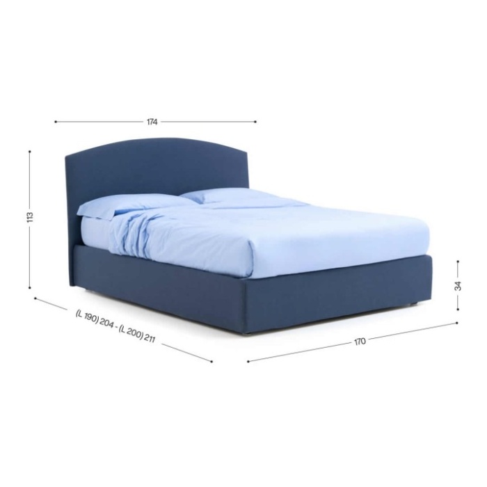 • Piazza e mezza (rete 120x190/200): L.134 x P.204/211 x H.113 cm