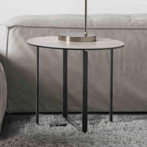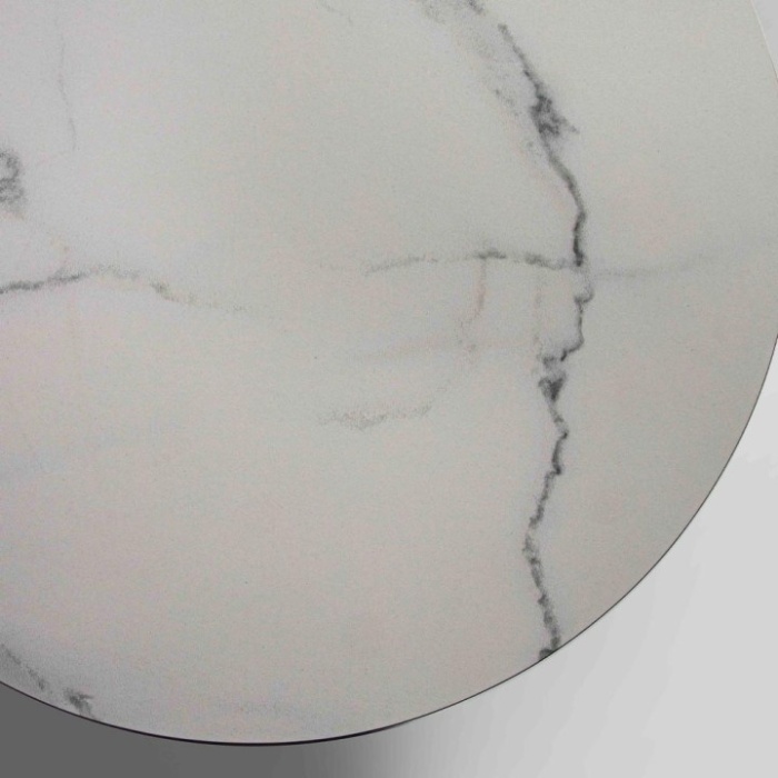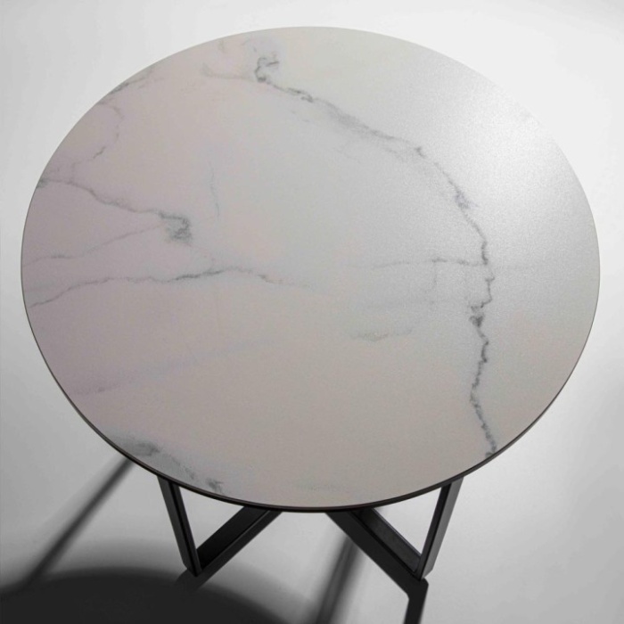 Con una struttura in acciaio verniciato nero, offre stabilità e durata nel tempo, mentre il piano in vetro ceramica bianco marmo aggiunge un tocco di eleganza e raffinatezza all'ambiente.