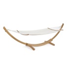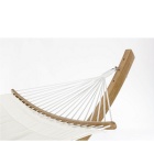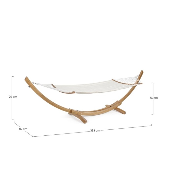 Il design dell’amaca unisce uno stile moderno alla bellezza dei materiali naturali, rendendola un complemento d’arredo outdoor raffinato e accogliente.