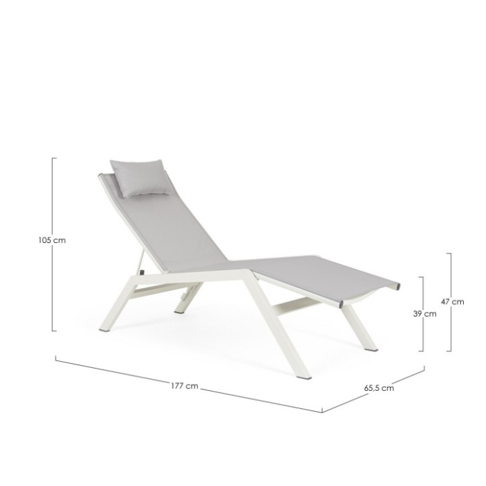 La struttura in alluminio verniciato a polvere (poliestere) è pensata per garantire leggerezza e resistenza alle intemperie, ideale per l'uso quotidiano in giardini, terrazze o bordo piscina.