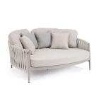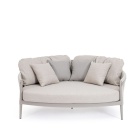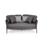 I cuscini della seduta e dello schienale sono sfoderabili, confezionati in tessuto idrorepellente Olefin (100% polipropilene), una fibra altamente resistente ai raggi UV e alle intemperie.