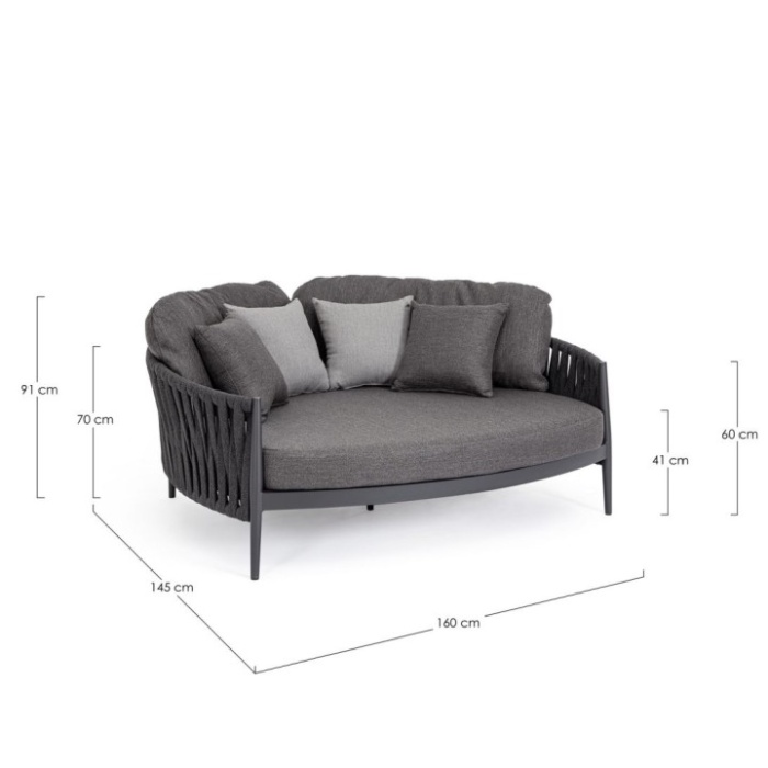 Il rivestimento è realizzato con un originale intreccio in corde di tetoron (100% poliestere), imbottite in gomma di polietilene, che donano al prodotto un aspetto accogliente e moderno.