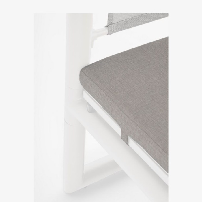 I cuscini sfoderabili sono realizzati in tessuto idrorepellente Olefin (100% polipropilene), resistenti all’umidità e facili da pulire, perfetti per l’utilizzo quotidiano all’aperto.