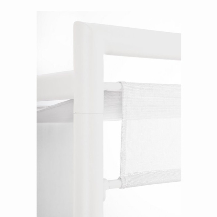 La struttura in alluminio verniciato a polvere (poliestere) garantisce resistenza agli agenti atmosferici e leggerezza, ideale per l’uso outdoor.