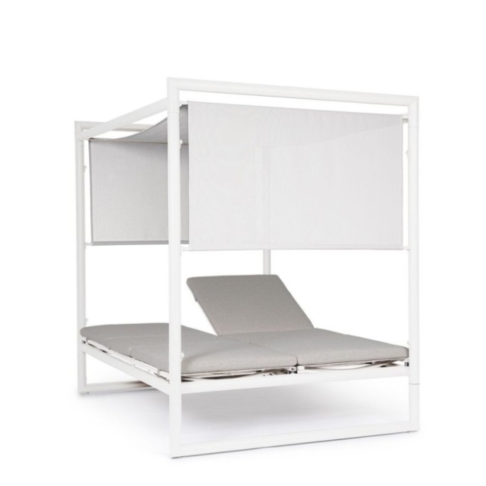 La seduta è composta da due lettini in textilene reclinabili in entrambe le direzioni, regolabili in 4 posizioni, per offrire il massimo del comfort.