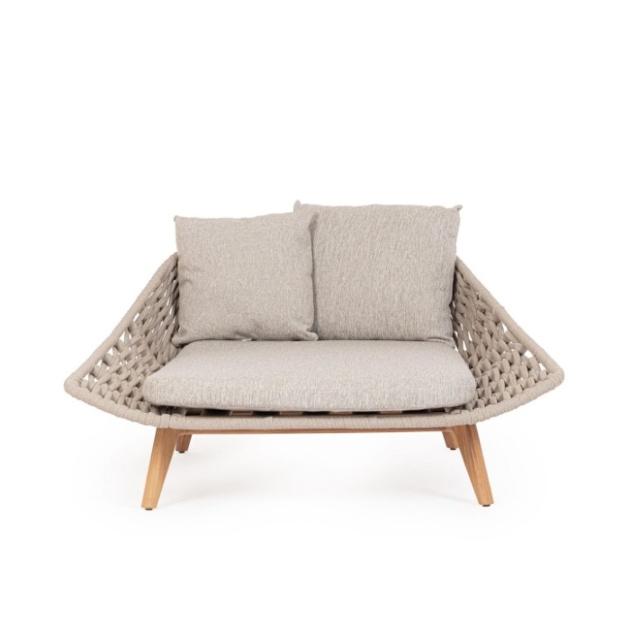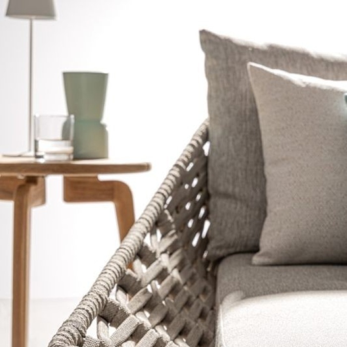 La combinazione di alluminio,di teak e corda intrecciata rende questo arredo unico nel suo genere, perfetto per chi desidera uno stile caldo, accogliente e attuale.