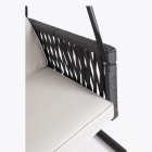 I braccioli sono rivestiti in corda di poliestere, dettaglio che dona eleganza e praticità alla seduta.