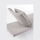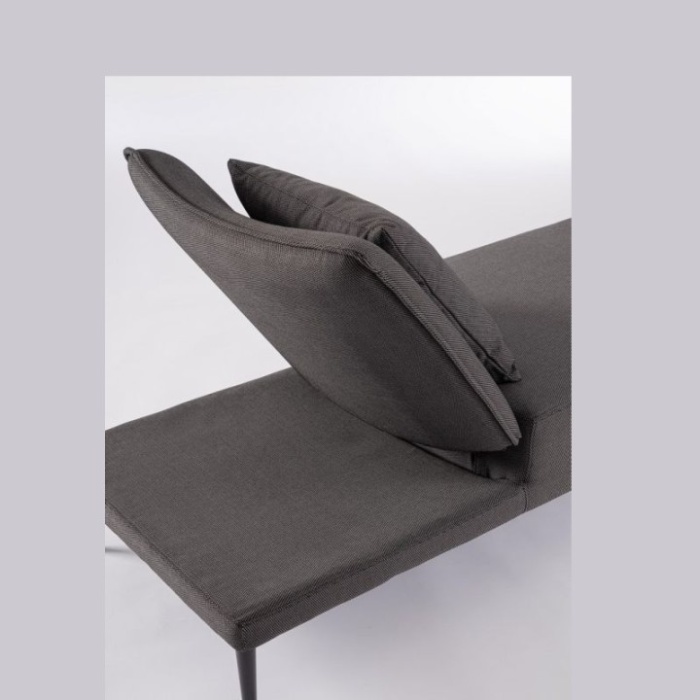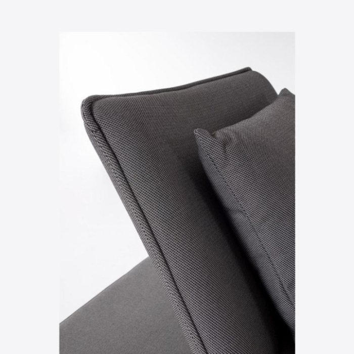 La seduta e lo schienale sono realizzati in tessuto tecnico da esterno Olefin (100% polipropilene, 285gr/m2), un materiale idrorepellente, impermeabile internamente e resistente ai raggi UV (grado 7).