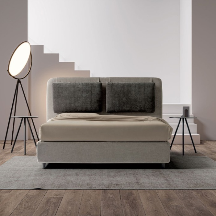 La sua testata imbottita è arricchita da due cuscini indipendenti, pensati per offrire un sostegno personalizzato durante la lettura o i momenti di relax.
