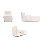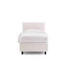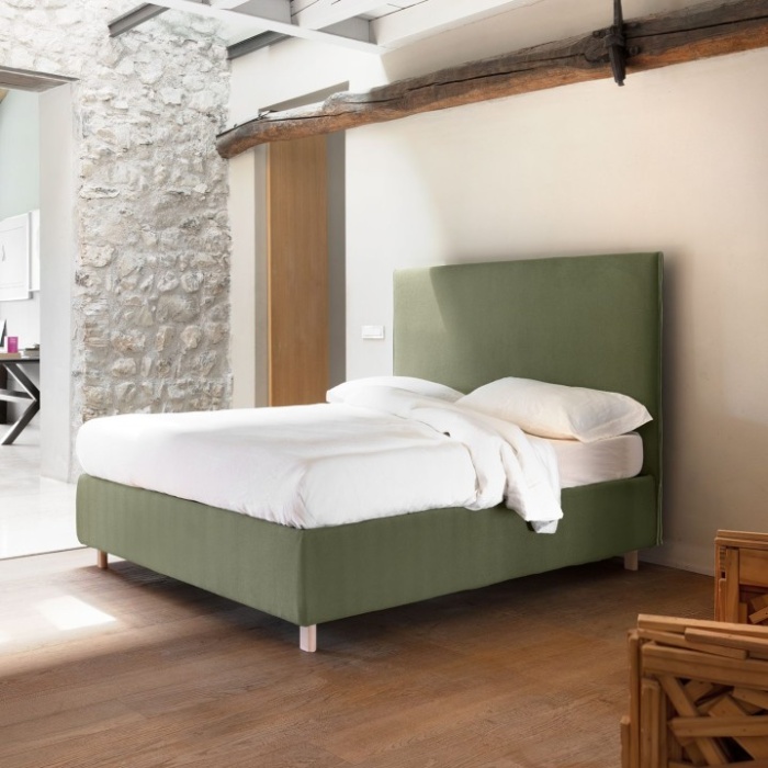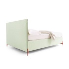 La testiera imbottita e affusolata conferisce comfort e sostegno, valorizzando al contempo il design complessivo del letto.