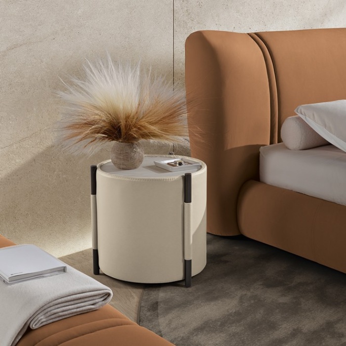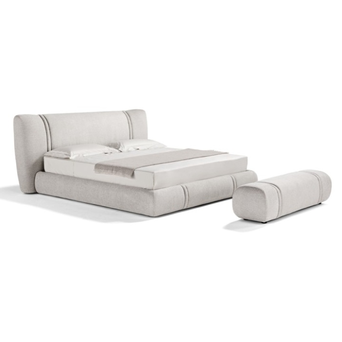 Questo modello si distingue per la sua testiera imbottita, ampia e accogliente, arricchita da cuciture sartoriali che ne esaltano le forme e creano un piacevole gioco di volumi.