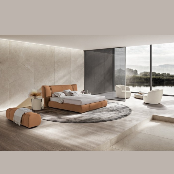 Il letto Ember di Max Divani è l’evoluzione della celebre poltrona omonima, reinterpretata per offrire comfort e raffinatezza anche nella zona notte.