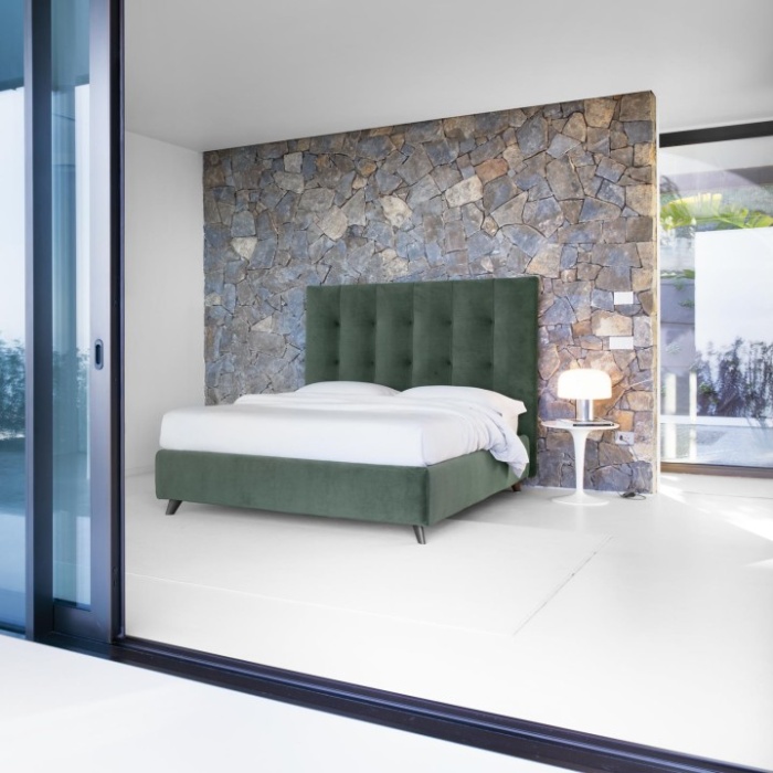 Il modello è disponibile in due versioni: Emma High, con una testiera alta che si distingue per la sua imponenza e per le linee slanciate, perfetta per chi ama un arredo importante e scenografico.