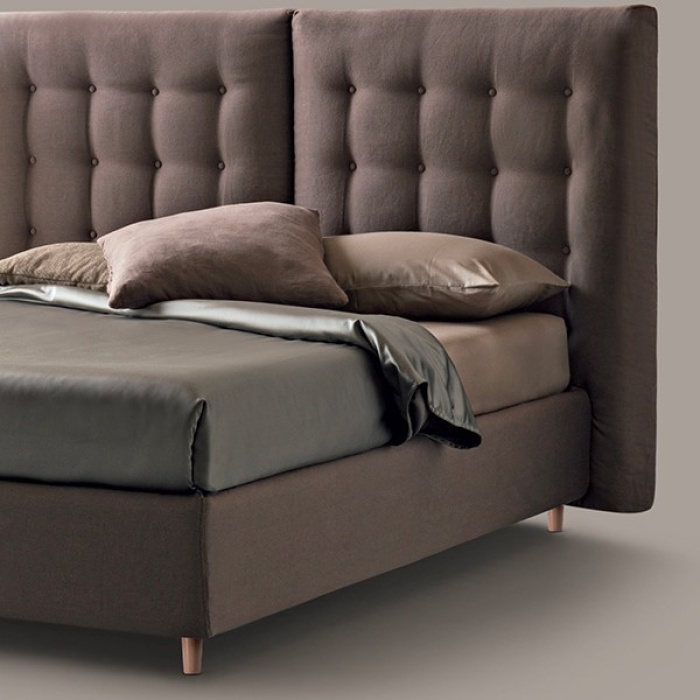 La testata alta e imponente cattura subito lo sguardo, mentre le impunture regolari conferiscono armonia e equilibrio visivo, trasformando la camera da letto in uno spazio elegante e sofisticato.