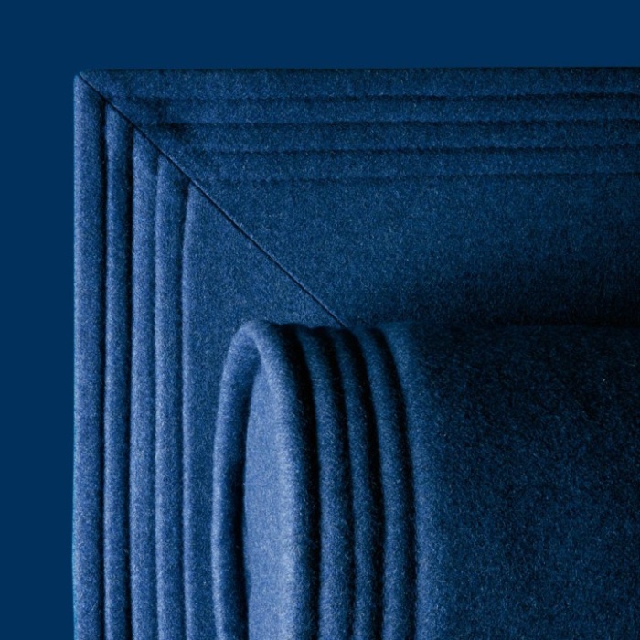 Il particolare stile di cucitura con tre impunture perimetrali è realizzato nel prestigioso tessuto Nord Wool, disponibile in diverse tonalità per adattarsi a differenti contesti di arredo. Questo materiale pregiato in lana esalta la qualità artigianale e la cura sartoriale del marchio.