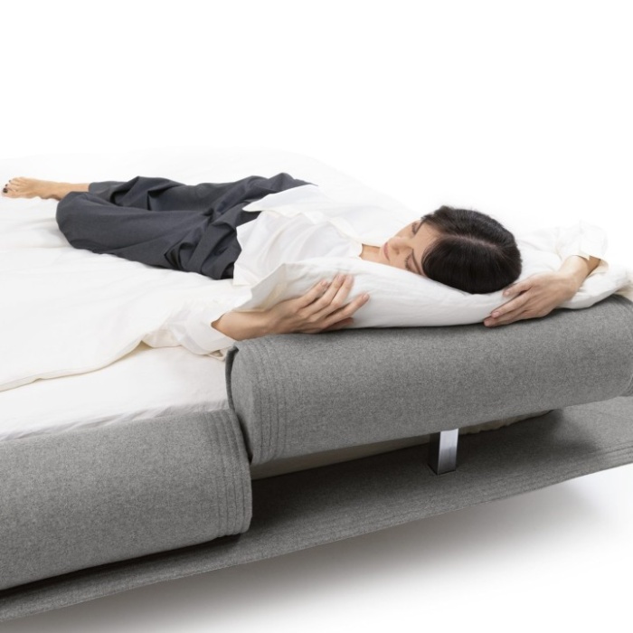 Creato nel 2010 dal team di Studio V7, il modello si distingue per il suo design sospeso, con una base sottile e piedini rientranti che lo fanno apparire come fluttuante nell’aria. Questo dettaglio dona alla zona notte un senso di leggerezza e raffinatezza.