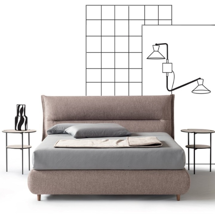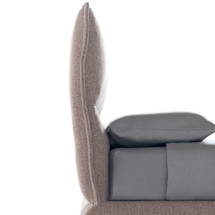 Questo modello colpisce subito per la sua linea morbida e armoniosa: le bombature orizzontali della testata e del giroletto si fondono in un insieme elegante, capace di esprimere sin dal primo sguardo la sua funzione primaria — offrire riposo e benessere.