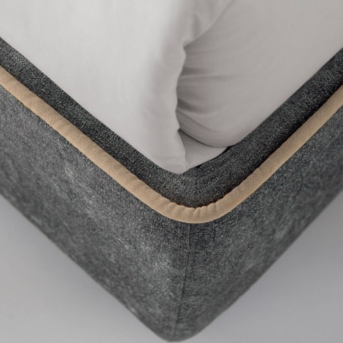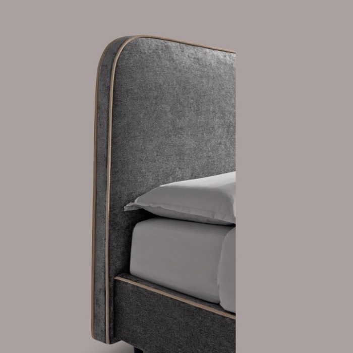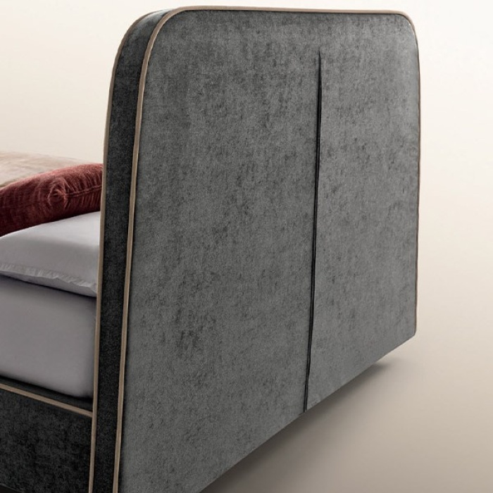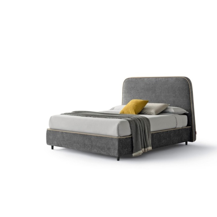 L’imbottitura soffice e i piedini dal design discreto completano un modello capace di valorizzare la camera da letto con classe e comfort. La possibilità di scegliere colori e tessuti permette di personalizzare ogni dettaglio, inclusa la delicata rifinitura del piping che contorna la testata, donando un tocco di eleganza sartoriale.