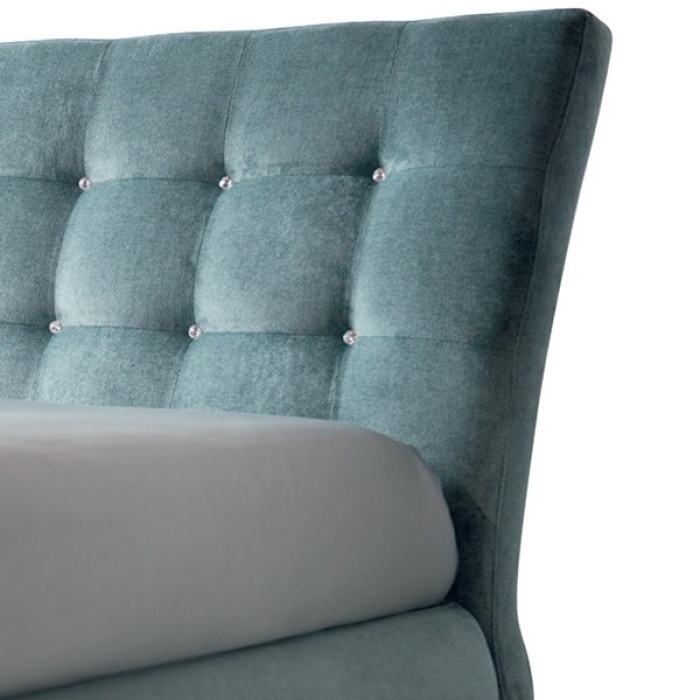 La testata trapuntata, impreziosita da cristalli Swarovski, cattura la luce e regala un effetto scenografico che valorizza l’intera camera da letto. L’inclinazione della testiera, oltre a donare un aspetto elegante, offre un sostegno confortevole per la schiena, ideale per leggere o rilassarsi.