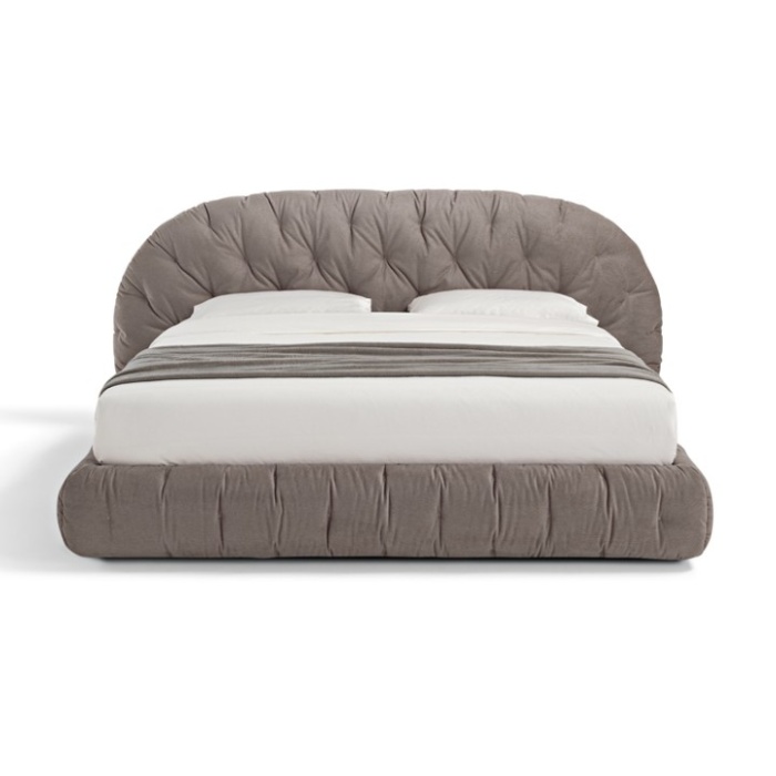 Il sommier, anch’esso imbottito e rivestito con lo stesso tessuto, contribuisce a creare un’estetica uniforme e raffinata, senza risultare eccessivamente formale.