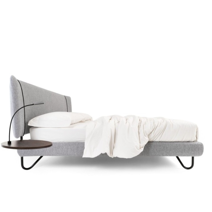 È possibile completare l’arredamento con il comodino coordinato e la lampada Sinuè, disponibile nei colori Bianco o Nero, per un ambiente notte armonioso e dal fascino contemporaneo.