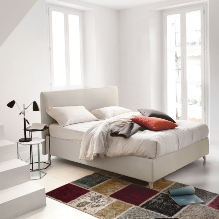 Il letto Manuel è disponibile in due versioni: con rete a doghe per chi preferisce la leggerezza di una struttura essenziale, oppure con contenitore Box Plus, una soluzione intelligente che offre ampio spazio di archiviazione per biancheria e accessori.