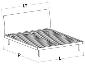 Testiera: Pannello in nobilitato sp. 2,2 cm curvato con masselli applicati, bordato con bordo ABS sp. 1 mm.