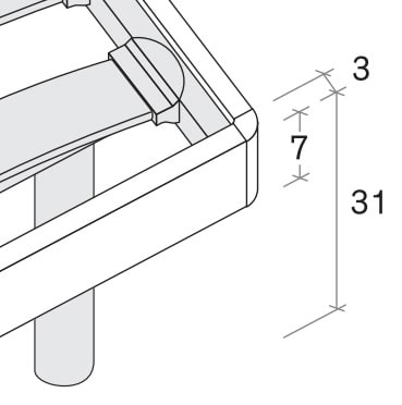 Giroletto: In nobilitato con raccordi stondati in massello.