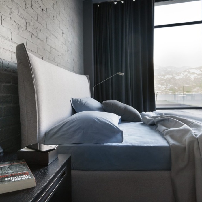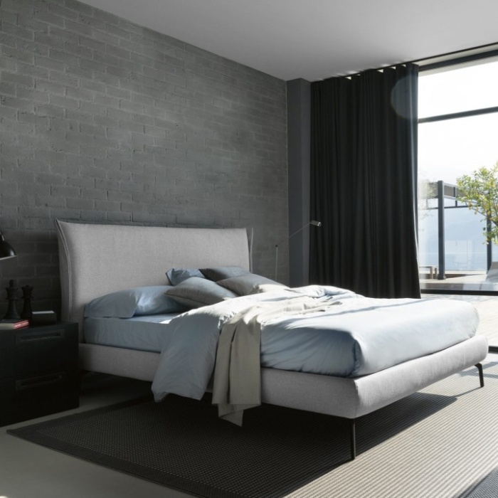 Questa curvatura dolce e armoniosa dona al letto un carattere poetico e sofisticato, mentre il cuscino unico integrato nella testiera avvolge e accoglie con morbidezza.