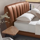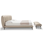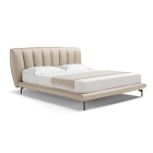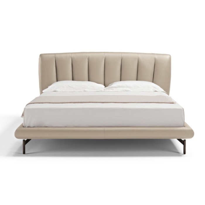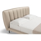 La testiera imbottita è il tratto distintivo di questo modello: la sua forma a conchiglia, con cuciture verticali ritmate, dona movimento e leggerezza a tutta la struttura, richiamando le onde morbide del mare.