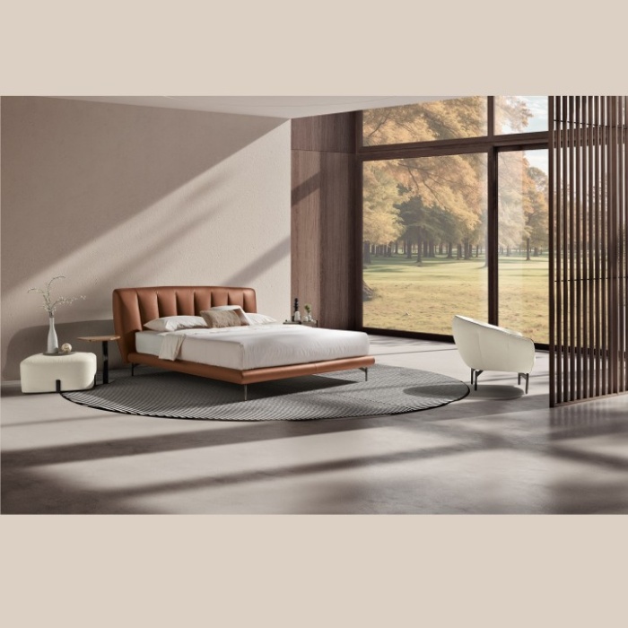 Ogni curva del letto Perla è pensata per abbracciare lo spazio del riposo e creare un’atmosfera intima, rilassante e sofisticata.