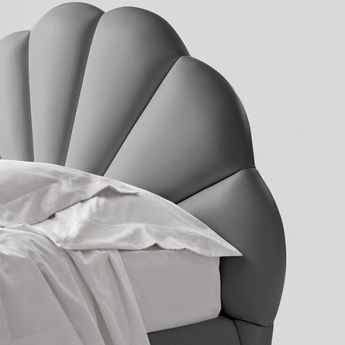 Il letto Pietra di Sole di NEFI ITALIA è una creazione dal forte impatto estetico, capace di trasformare la zona notte in un ambiente elegante e ricco di significato. La sua testata dalla forma originale è il cuore del progetto: può essere interpretata come raggi di sole, petali delicati o la ruota di un pavone, simboli di rinascita, armonia e apertura verso il mondo.