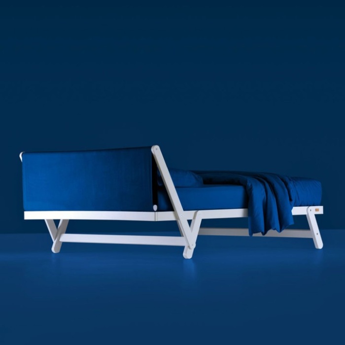 Ispirato alle tradizionali sedie a sdraio da spiaggia, questo modello racchiude tutta la leggerezza e la freschezza dell’estate, trasformando la camera da letto in un rifugio di serenità e naturale armonia.