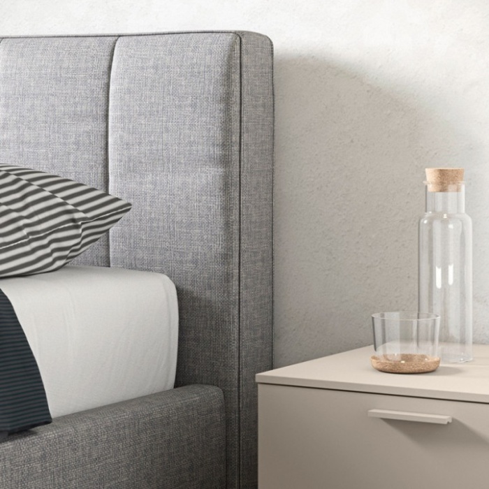 Testiera: Pannello con imbottitura in poliuretano espanso densità 30 e ricoperto con resinato accoppiato vellutino da 150 gr.