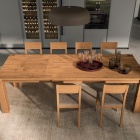 Il modello Square si adatta alle diverse esigenze di spazio. Nella versione estensibile (spesso identificata come New Square), il tavolo integra un sistema di allungamento fluido con guide in legno e allunghe interne da 45 cm. Questo meccanismo permette di trasformare il tavolo in pochi istanti, mantenendo inalterata la stabilità anche alla massima apertura. Il piano è realizzato con bordo dritto per una pulizia formale totale.