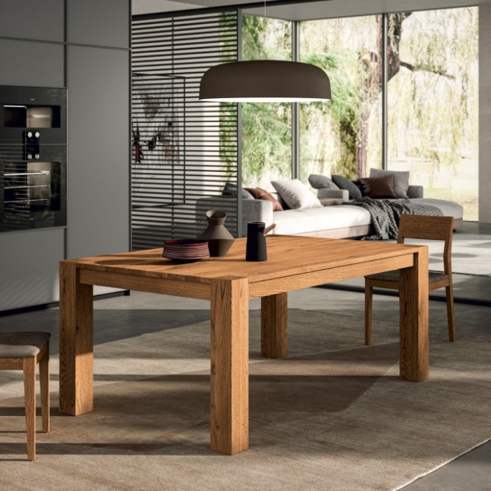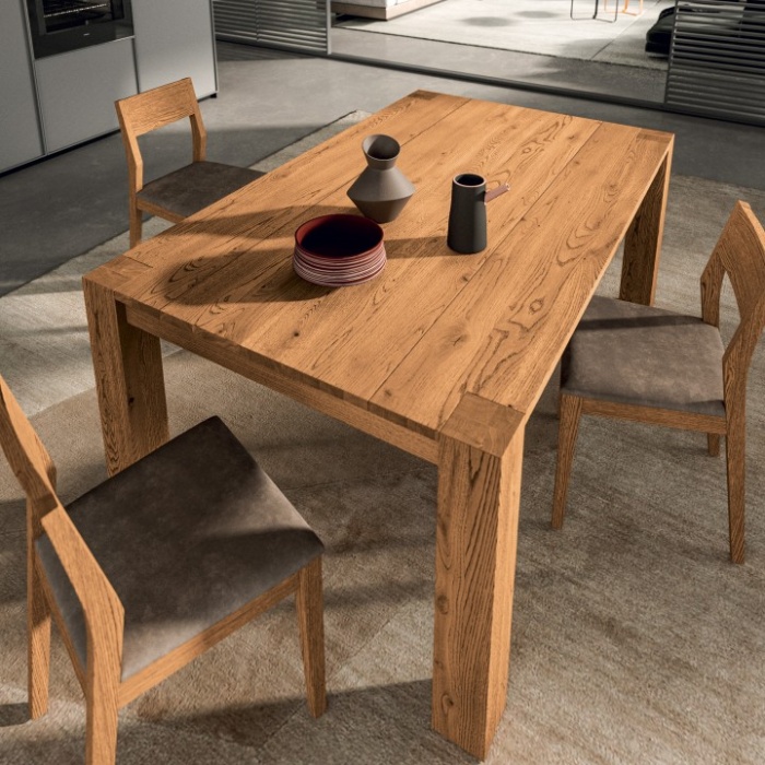 Per valorizzare la presenza scenica dello Square, consigliamo di abbinarlo a sedie che ne riprendano la solidità materica, come il modello Maya in legno coordinato, oppure a sedie imbottite in tessuti naturali dai toni neutri (modello Ruby). È un tavolo che si inserisce perfettamente in ampie sale da pranzo, loft industriali o ambienti domestici dove la qualità del materiale è messa al primo posto.