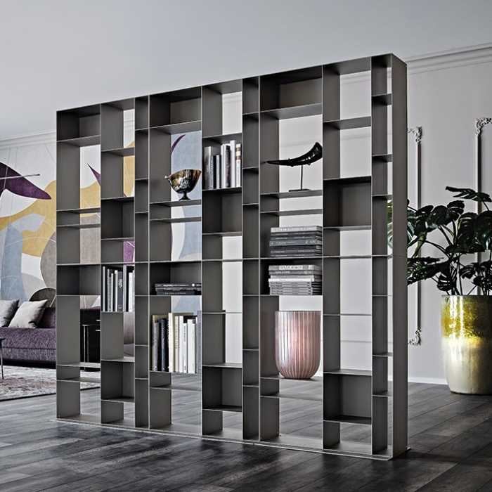 La libreria Latitude è una versatile libreria modulare in metallo pensata per offrire infinite possibilità compositive e adattarsi con eleganza a qualsiasi ambiente contemporaneo. Il suo design intelligente si basa su un unico modulo ripetibile, che può essere combinato liberamente per creare configurazioni personalizzate, capaci di valorizzare lo spazio e di esaltare le proporzioni della stanza.