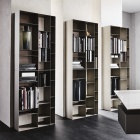 La struttura in metallo è impreziosita da una finitura metallizzata, che dona luminosità e un tocco sofisticato all’insieme. Il risultato è una libreria di design moderna, dinamica e funzionale, capace di adattarsi con stile a ogni esigenza di arredo, diventando un elemento distintivo in qualsiasi zona living contemporanea.