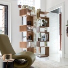 Osuna è una libreria girevole dal design unico, caratterizzata da una struttura slanciata che si sviluppa in altezza, evocando la modernità e la solidità di un edificio futuristico dai toni germanici. La combinazione di vetro e legno crea un affascinante equilibrio tra materiali, dando vita a un complemento d’arredo che unisce eleganza e funzionalità.
