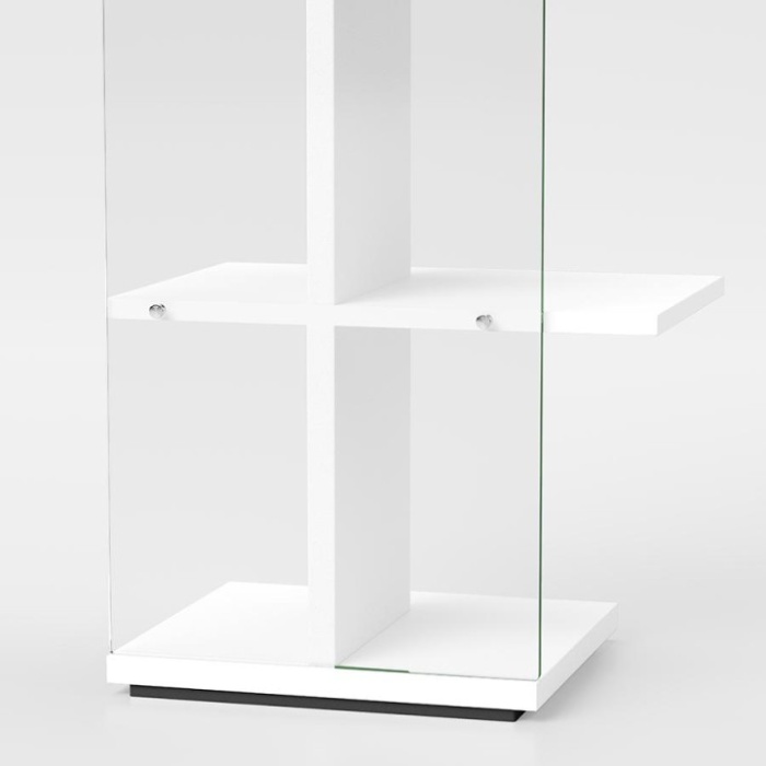 I ripiani, con uno spessore di 18 mm, offrono ampio spazio per organizzare libri, oggetti decorativi o elementi da esposizione mantenendo un aspetto ordinato e raffinato.