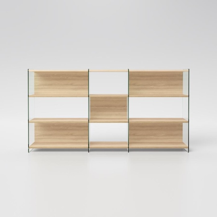 Con dimensioni imponenti, la libreria offre una notevole capacità di archiviazione, senza compromettere l’eleganza del design. La struttura solida, combinata con l’aspetto leggero del vetro, crea un equilibrio perfetto tra funzionalità e raffinatezza, progettata per adattarsi a diverse configurazioni d’arredo, Byblos può essere utilizzata in composizioni lineari lungo una parete, ad angolo per sfruttare al meglio lo spazio, oppure come divisorio al centro della stanza, rendendola ideale per ambienti open space o loft.