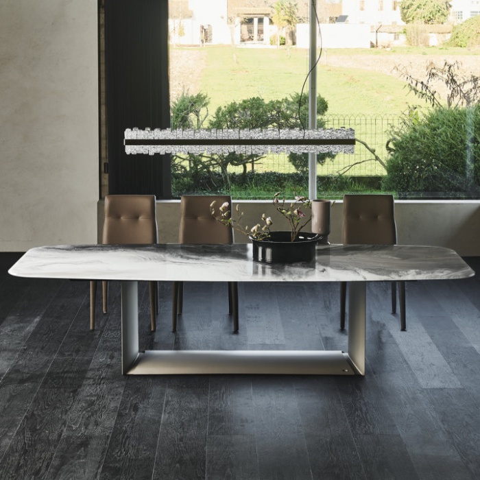 I tavoli da pranzo Dragon si distinguono per la scelta del materiale che costituisce il piano. Le molteplici combinazioni permettono di avvicinare questi tavoli di design a svariati gusti e stili, per arredare una zona living moderna.
