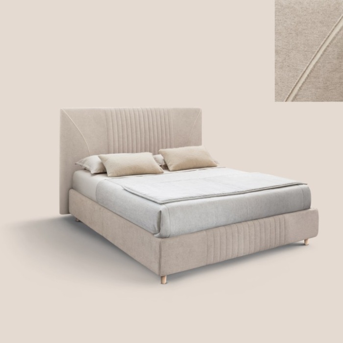 Le trapuntature verticali della testata, riprese anche sul giroletto, creano un effetto armonioso e moderno, valorizzando ogni dettaglio della struttura.