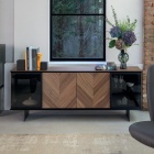 Aira prende il nome dall’arabo e significa “splendente”, un aggettivo che racconta perfettamente l’essenza di questa madia dal design raffinato ed elegante. Le ante in legno conferiscono un aspetto sofisticato e resistente, mentre il LED interno (opzionale) valorizza gli spazi interni, creando un’atmosfera calda e luminosa che illumina con stile ogni ambiente living.