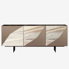 Alcione è una madia che incarna l’incontro perfetto tra design puro e lavorazione artigianale di altissimo livello. Il suo stile raffinato si esprime attraverso un’estetica equilibrata e ricercata, impreziosita dalla combinazione esclusiva di porcellana e vetro sulle ante. Questa unione di materiali nobili e contemporanei non è solo decorativa, ma genera una sorprendente alternanza di riflessi e luminosità, che varia a seconda della luce e dell’angolazione, donando alla madia un fascino sempre mutevole e sofisticato.