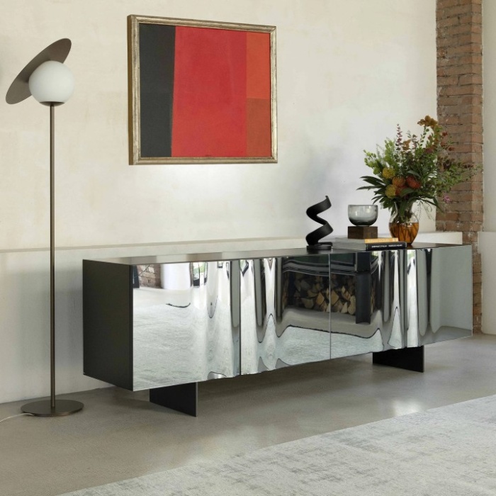Le linee pulite della struttura e l’equilibrio tra materiali lucidi e opachi esaltano ulteriormente la cura artigianale e la ricerca stilistica che contraddistingue ogni dettaglio. La madia Anemos si inserisce perfettamente in contesti living di gusto sofisticato, dove il design non si limita alla funzione, ma racconta una storia di innovazione, matericità e fascino senza tempo. Un pezzo d’arredo che incanta, sorprende e conquista.