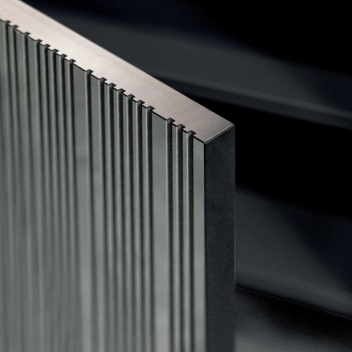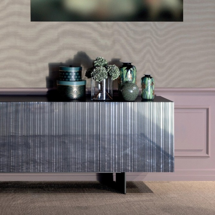 Questa composizione crea un gioco dinamico di luci e riflessi, che dona profondità e movimento all’intero frontale della madia. Barcode non è solo un arredo contenitivo, ma una vera e propria installazione decorativa, perfetta per ambienti moderni dove ogni dettaglio parla di stile, innovazione e carattere. La qualità delle finiture e l’originalità della composizione testimoniano l’approccio sartoriale e l’eccellenza del Made in Italy che caratterizza ogni creazione Tonin Casa.