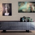 Barcode è una madia dal design fortemente grafico e contemporaneo, che prende il nome dal celebre codice a barre per reinterpretarlo in chiave stilistica e decorativa. Le sue superfici sono scandite da un ritmo visivo preciso e accattivante, creato da un alternarsi di elementi verticali in contrasto, che combinano specchio argento e laccatura nera nella versione più intensa, oppure specchio e laccatura bianca con dettagli neri per un look più delicato ma altrettanto incisivo.