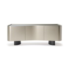 Perfettamente simmetrica, Blues si distingue per la sua forma tondeggiante impreziosita da una delicata rientranza centrale, che dona profondità e ritmo alla composizione. Le ante esterne, aprendosi, si dispiegano con eleganza come le ali di un gabbiano, rivelando un interno sofisticato, arricchito da piani in cristallo pregiato che aumentano la luminosità e valorizzano gli oggetti contenuti. L’equilibrio tra semplicità e carattere è uno degli elementi chiave di questa madia moderna: l’assenza di eccessi decorativi viene compensata da una forma iconica e riconoscibile, capace di catturare lo sguardo con naturalezza.